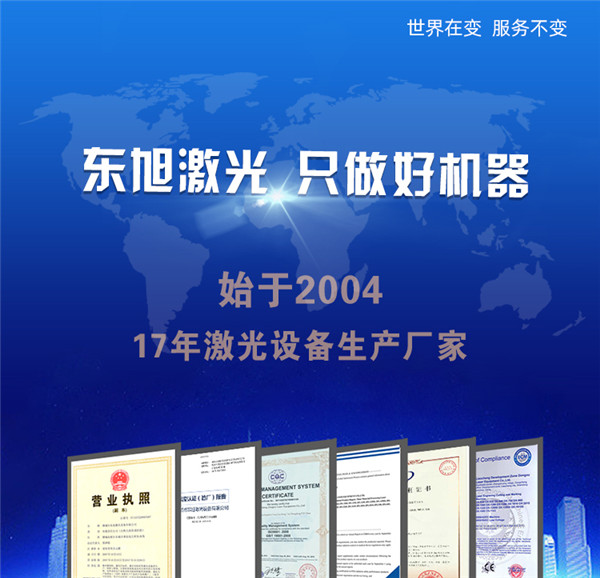 公司产品涵盖激光雕刻、激光切割、激光裁剪、激光打标、激光雕版等几大系列的激光设备,东旭激光凭借着多年的经验逐步研发了适用于各行各业的专业机型,并以其优异的配置、稳定的性能、鲜明的性价比和优质的服务,被行业内和国内外老客户所认可。公司与全国数家有实力的工艺品加工、服装制作、广告制作等公司成立了良好的合作关系,并不断优化产品功能和服务措施,力争为客户创造可靠耐用的激光加工工具和更加优质快捷的服务。本着“世界在变,服务不变”的服务宗旨,努力于激光设备制造行业。