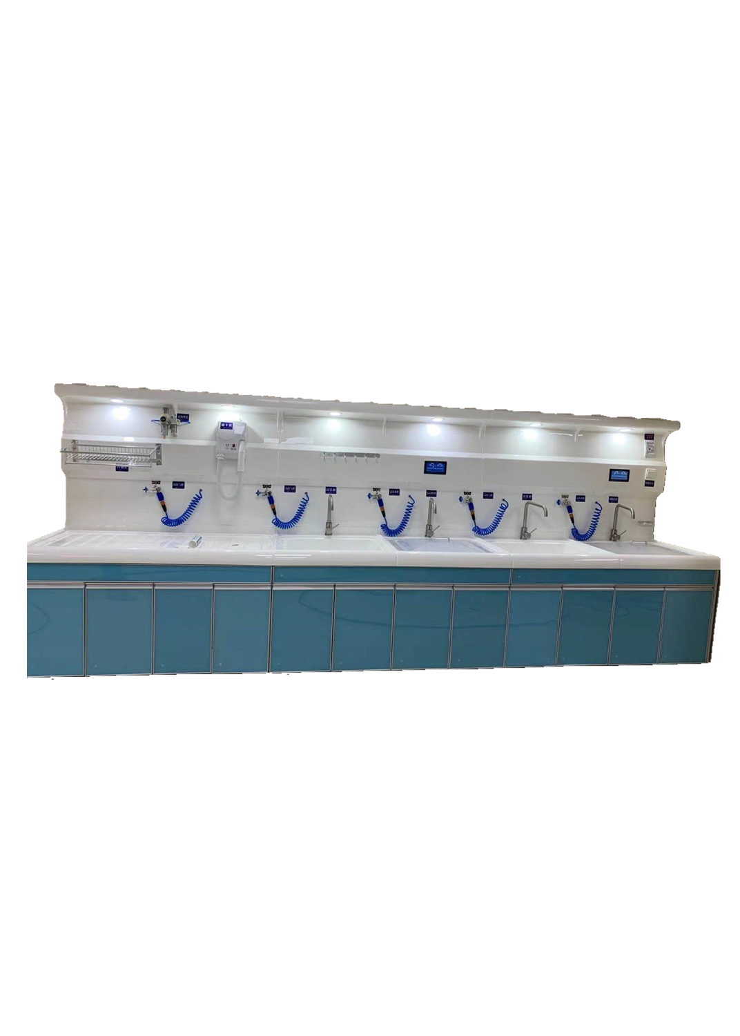 台面/洗消槽:台面、洗消槽及功能背板都采用优质的改性PMMA高分子材料分段式一体吸塑成型,该材料抗压强度高,弹性好,抗氧化,高度耐酸碱,表面光洁易清洗,细菌附着率极低,对内镜无磨损