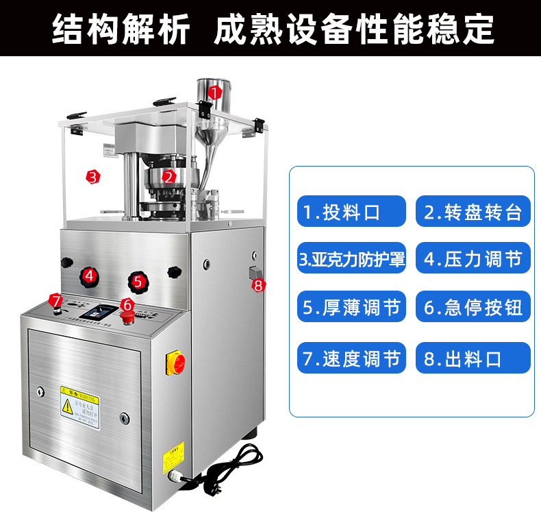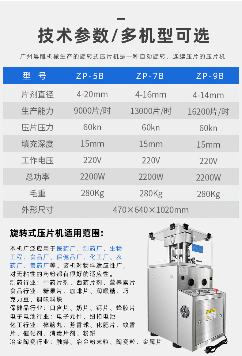 晨雕ZP-5B全自动旋转式压片机 奶片钙片粉末打片机 药厂制片设备