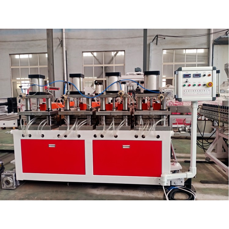 80的挤出机双螺杆喂料,喂料稳定,生产制品轻重一致。挤出量大,生产效率高。定型平台材质为不锈钢材质,稳固不易变形,定型效果好。八辊牵引机牵引稳定,不打滑。横向切割机自动化程度高,落料架分为两种;一种是普通落料架,性能基础,价格较低。另一种则为机械手落料架,设备设计新颖,自动整齐落料。很大程度节省了人工,提高了生产效率。