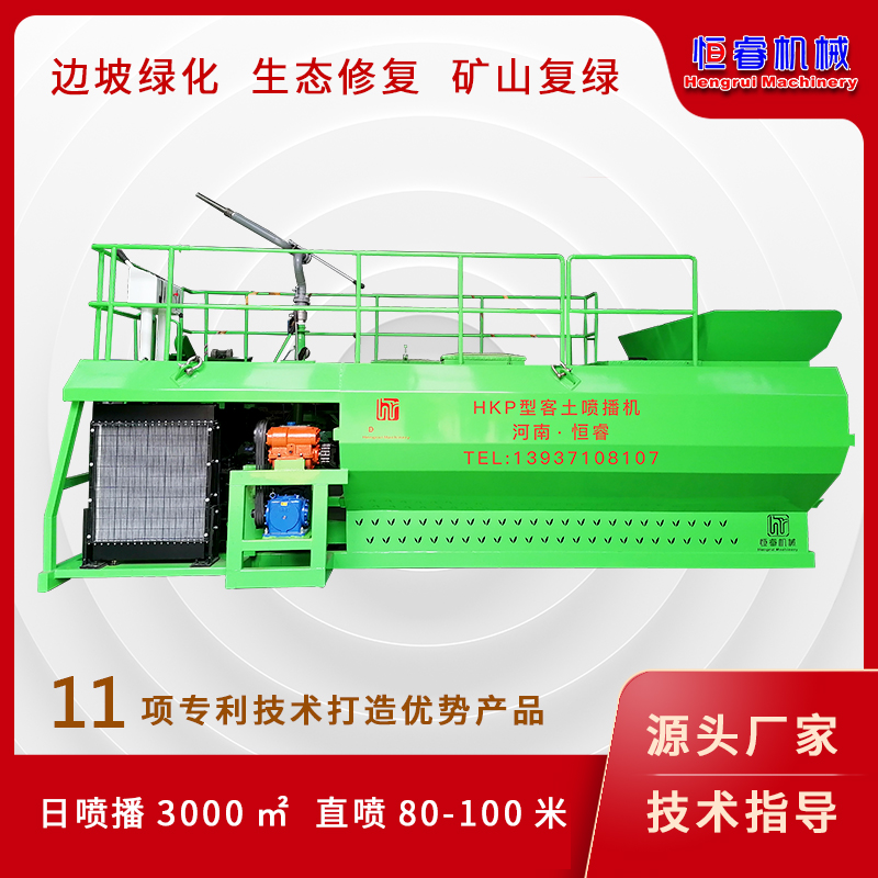客土喷播机是应用于边坡绿化的设备,通过本设备将土壤基质、绿化草籽、保水剂、黏合剂、肥料等,在喷播机搅拌罐中与水混合成胶状的浆液,用泥浆泵将其喷播于坡面上。由于浆液中含有保水材料、黏合材料、各种养分,在有了植物生长所需的水和其它营养物质来源的同时有抵御雨水冲刷对喷播材料的破坏,故而植物能够健康成长。
