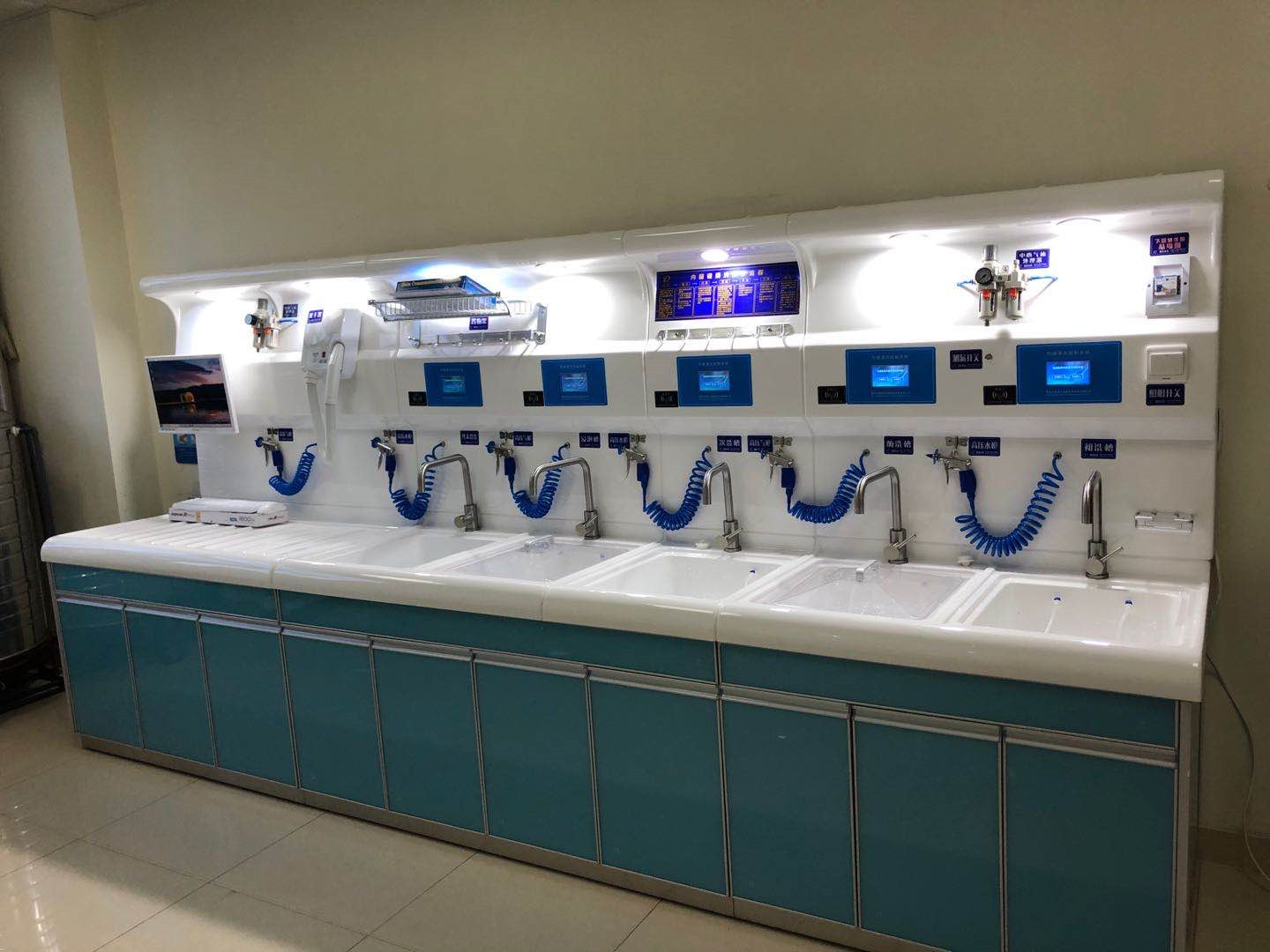台面/洗消槽:台面、洗消槽及功能背板都采用优质的改性PMMA高分子材料分段式一体吸塑成型,该材料抗压强度高,弹性好,抗氧化,高度耐酸碱,表面光洁易清洗,细菌附着率极低,对内镜无磨损