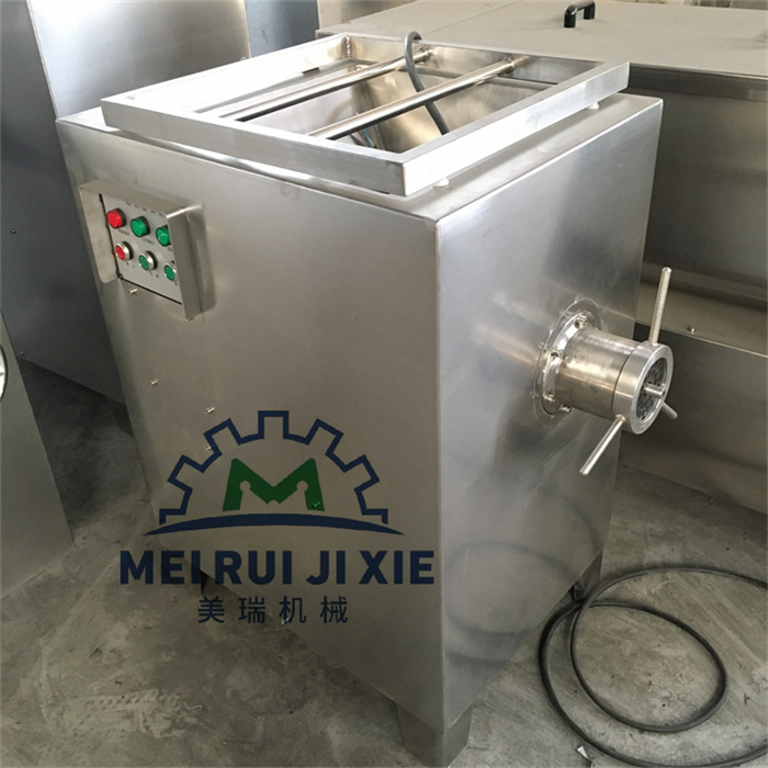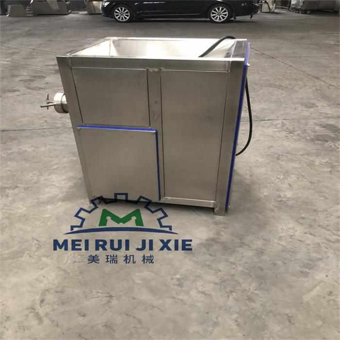 我公司生产的机器采用食品级不锈钢材质,机器型号有100型 120型 130型 等型号,欢迎大家来电咨询和采购我公司产品 肉制品生产行业中通用性高、使用范围广的一种肉食加工设备。它是依靠螺杆将料斗箱中的原料肉推到预切板处,通过螺杆的旋转挤压使孔板与绞刀产生相对质运转,从而将原料肉切成颗粒形状,确保了肉馅的均匀性。通过孔板的不同组合可达到理想的要求的不同肉馅。