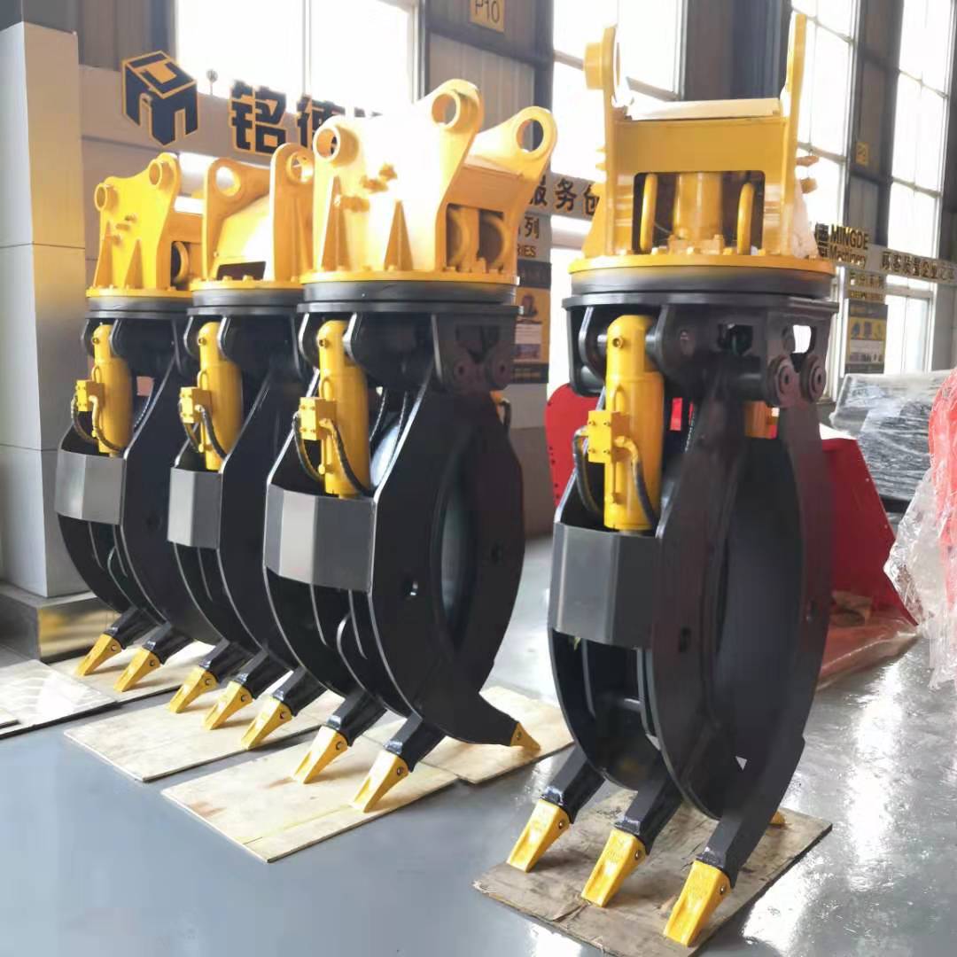 不回转液压式挖掘机抓木器:需要在挖掘机上添加一套液压阀块及管路来控制。