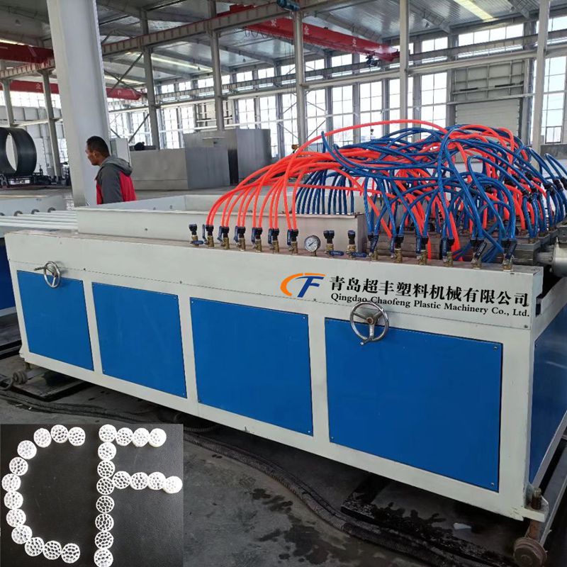 青岛超丰塑料机械有限公司位于青岛胶州市,主要生产销售塑料型材设备,塑料板材设备,塑料片材设备,塑料管材设备,公司产品已遍布全国各地。新开发的一出六生物填料设备,设备性能稳定,出料均匀,提高了生产效率。生物填料是新开发出的与以往载体截然不同,且具实效功能的微生物载体。它是由丝条相互熔接成型的多孔网状整体结构型填料。生物填料主要用于生活污水、城市污水的生物膜法处理工程,也可用于冷却塔的热交换处理,还可作为渗排不的土工材料,具有价格、安装方便和使用寿命长的优点。