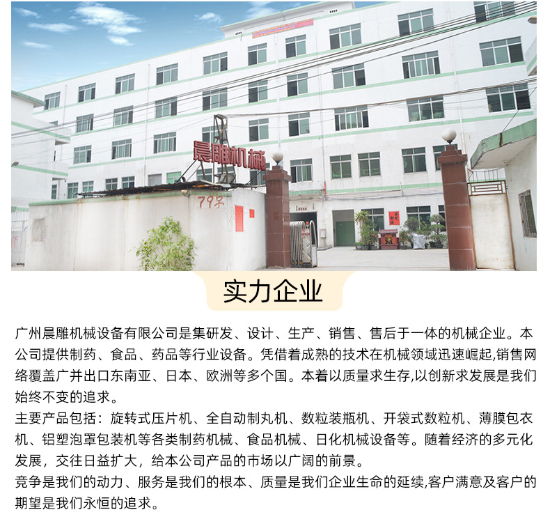 广州晨雕机械设备有限公司位于广州市白云区是集研发、设计、生产、销售、售后于一体的机械企业。本公司提供制药、日化等行业设备。凭借着成熟的技术在机械领域迅速崛起,销售网络覆盖广并出口东南亚、日本、欧洲等多个国。
