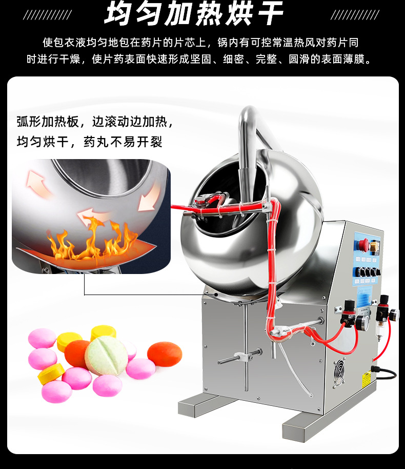 彩红糖压片糖果包衣机 药片药丸荸荠式糖衣机