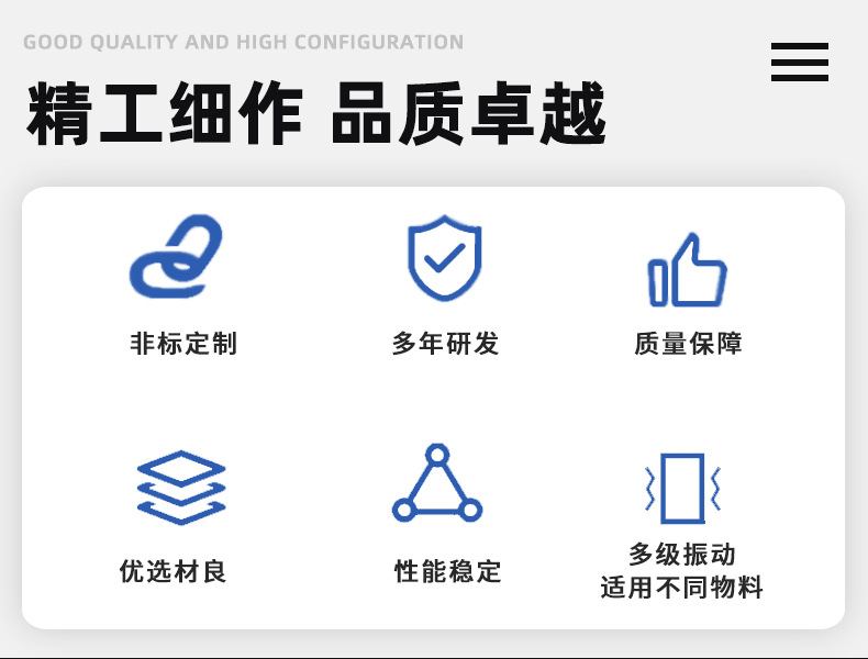 主要产品包括:电子数粒机、给袋式数粒包装机,瓶装生产线、全自动旋盖机,干燥剂塞入机,全自动理瓶机 压片机等整套制药设备。以过硬的产品质量、诚实守信的品格赢得了客户的尊重和信任。