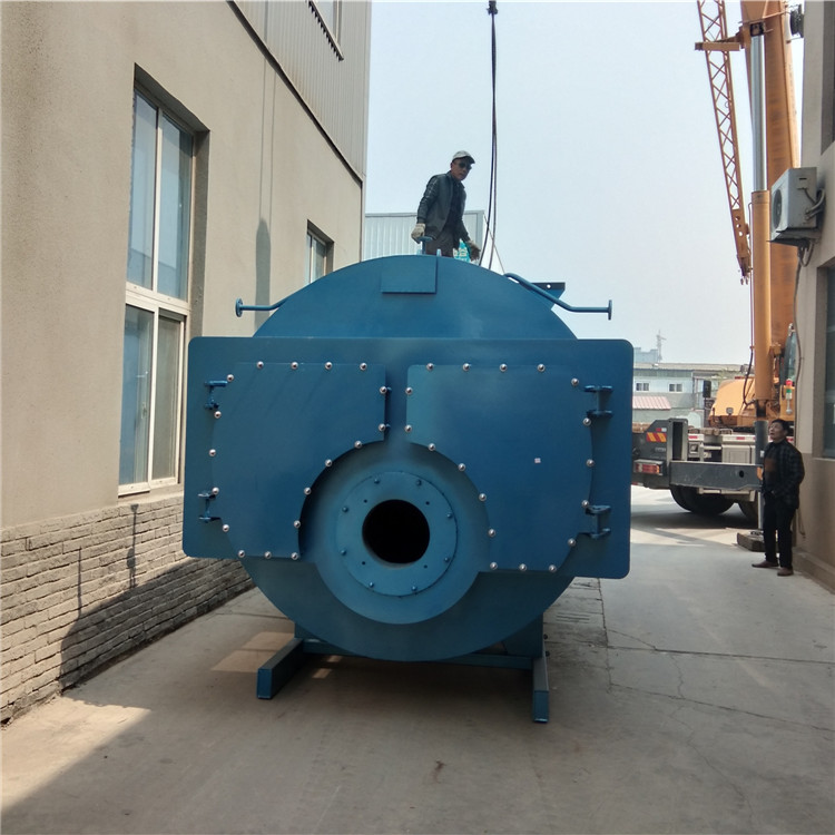 该产品的设计燃料为轻油或天然气;燃料从燃烧器喷出,被电子点火棒点燃,在炉胆内微正压燃烧,燃烬后的高温烟气由回燃室转弯180°进入第二、三回程烟管,由后烟箱上部转弯180°进入节能器换热后通过通过烟囱排入大气。