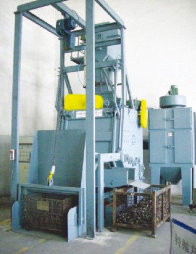 本机采用首尾相连的橡胶履带形成一个空间滚筒,使工件在抛丸过程中连续翻滚,尤其对易翻滚、无法吊挂、不怕碰撞的单件重量10Kg以下及中小规格的金属产品表面清理和强化。使工件表面呈现金属本色,消除工件内部应力,提高工件抗疲劳性,增加工件喷漆、塑喷、氧化、电镀时的附着力,并最终达到提高工件表面及内在质量的目的。可单机使用也可配线使用。