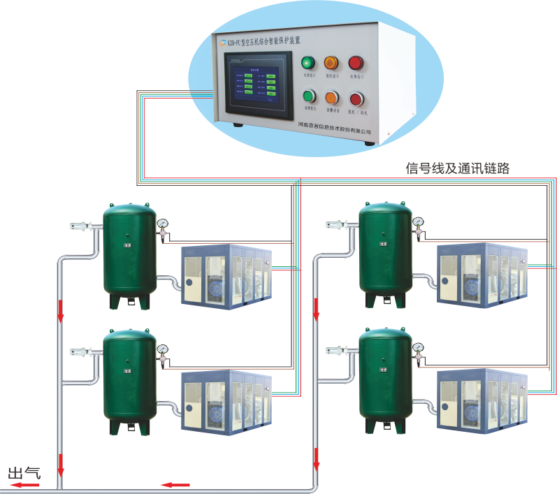 3、喇叭报jing保护控制输出后,设备中的保护继电器输出,控制空压机停机