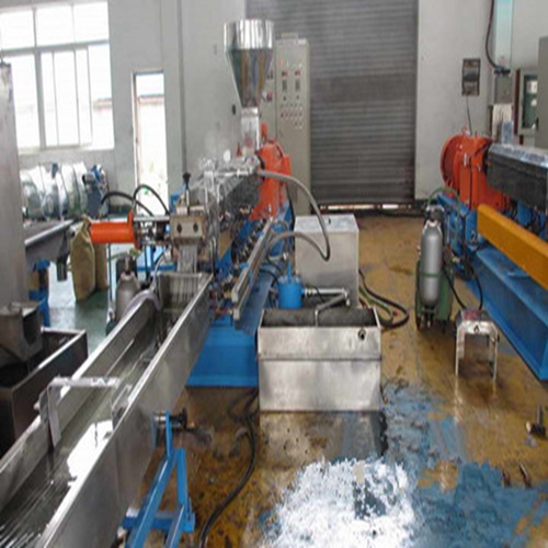 分离型螺杆的结构及应用分离型螺杆的结构特点是在熔融段增加一条副螺棱,将主螺纹槽分为两部分,在螺杆塑化过程中形成固液相分离,固相料全部留于固相槽中,而固相槽中的气体则在压力的作用下向后自料中排出,减少了制品中的气泡。同时增大了固相料与机筒内壁的热交换面积。高混机——吸料机——双螺杆造粒机——抽真空排气系统——水循环冷却水箱——冷却水槽——吹干机——切粒机——电柜等组成