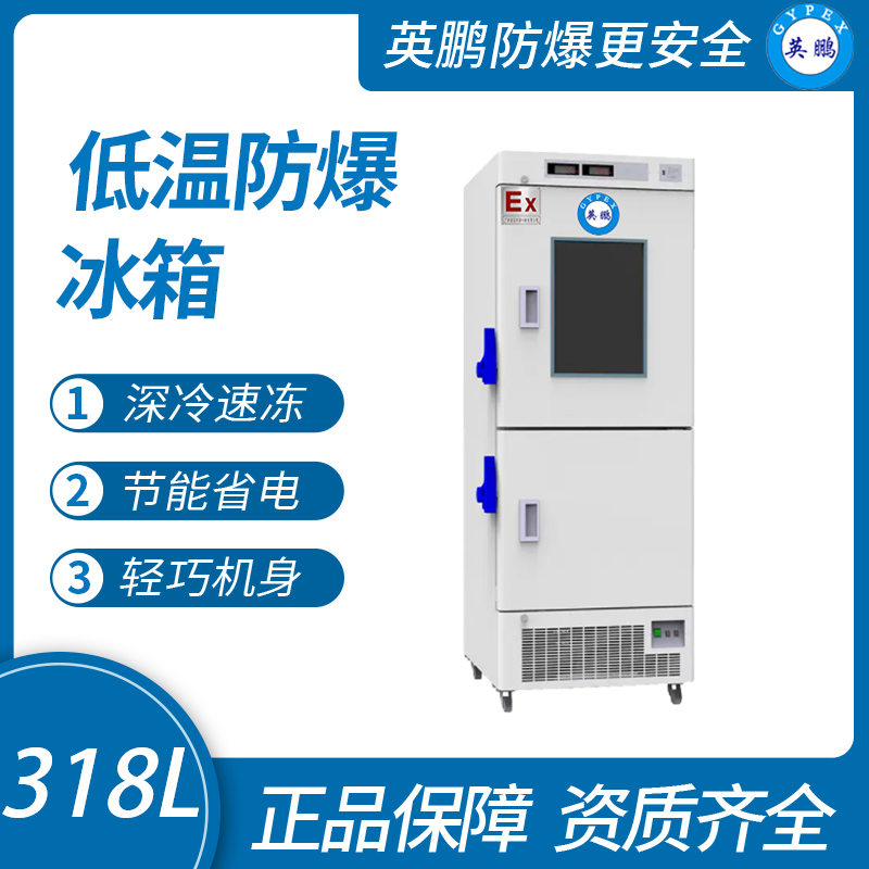 产品特点:英鹏防爆冰箱主要应用在石油、化工、科研、实验室等领域,用于在较低温度下冷却储存药品试剂等常温下不易保存易挥发易燃易爆危险物品。它由制冷压缩机、冷凝器、冷凝器风机、蒸发器、温度控制器组成让其能在危险场所使用,我们同样采用复合防爆技术对冷柜进行防爆处理。压缩机、冷凝风机采用浇封或隔爆技术处理,温控器作为一个无源开关与防爆有源光耦固态继电器组成本质温度自动控制系统。为保护压缩机不致损坏,采用延时型防爆固态继电器和过载保护及热保护器件,部分控制电器采用隔爆处理。为了防止静电所带来的危害,对冷柜内腔喷涂导电漆消除静电效应。