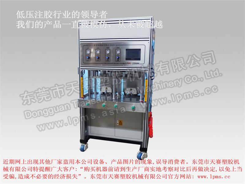适用于各式低压热熔胶成型树脂对产品注胶包封。其制程压力低0-6Mpa,不损伤零部件,无化学反应,成形快速,可取代灌封胶与外壳,成形后有保护,绝缘与防水效果。