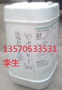 道康宁DC-57:无反应性乙二醇共聚物表面活性剂,100%活性浓度,手感、增滑、滑爽、抗缩孔、平滑剂,用量少,无污染,用后可再涂,提高涂料表面的抗磨损性,提高涂料流平性、平滑性、减少橘皮并提高光亮度,防止气泡,缩孔鱼眼产生。用于透明粉末涂料及水性,溶剂型涂料,聚合乳液,水性油墨,中性墨水,胶粘剂,密封胶,水性覆膜胶,水性颜料,乳胶漆,uv树脂合成等。特别适用于UV光固化涂料油墨体系。添加量0.05-0.5% .