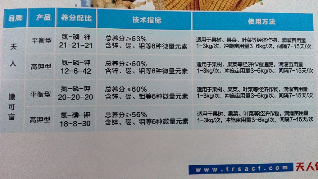 天人、撒可富系列水溶性肥料杂质少,电导率低,使用浓度十分方便调节,所以它即使对幼嫩的幼苗也是安全的,不用担心引起烧苗等不良后果。