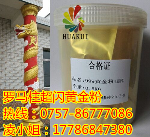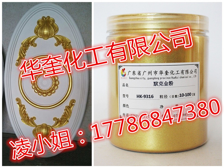 华奎999黄金粉无毒、无味、环保、耐光照、耐酸碱、不变色、不迁移、不导电等特性,可使成品颜色金黄、鲜艳、光泽明亮,稳定性好,呈现闪烁的黄金效果。能耐极高温度。广泛适用于各类工艺品、装饰品、佛像、寺庙、雕刻、铁艺、陶瓷、印刷、涂料、塑料、油墨、皮革等行业,对佛像、寺庙用金粉效果赋予优雅高贵的黄金色泽,可提高其产品附加值及竞争力。