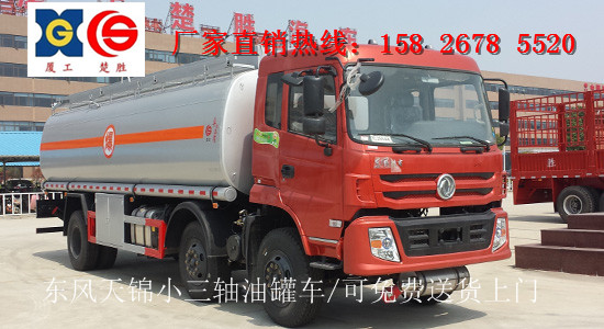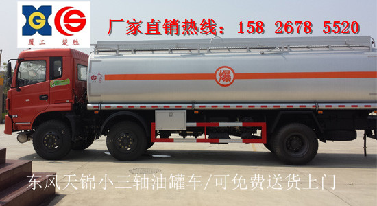 5吨、6吨、8吨、10吨、12吨、15吨、18吨、20吨、22吨…30吨等大小型油罐车都有。主打底盘车型有:东风劲卡、东风福瑞卡、东风多利卡、东风140(尖头、平头)、东风145、东风153、东风天锦、东风1208、东风天龙。解放、福田、江淮、江铃、五十铃等…根据不同客户的要求来制定一辆客户最满意的油罐车。全新东风天锦15吨油罐车厂家现货低价出售!安全性高!品质保证!确保上户无忧! 钢丝胎,带助力,带盘式制动、限速装置、ABS防抱死系统,罐体实际容积17立方,标配单仓带泵,泵可自吸自排,带欧标罐口、海底阀,折叠式防护栏,可选装空调、加油机、下装油口、油汽回收、防溢流探杆等现在厦工楚胜集团告诉你,只要想做,就不怕难。我公司专业生产不同大小不同品牌的油罐车,手续正规,完全按照国家标准生产。如果你觉得上牌等手续太繁琐,我公司可协助你上牌,营运证等手续全套给你