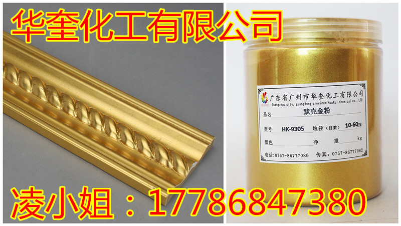 华奎999黄金粉无毒、无味、环保、耐光照、耐酸碱、不变色、不迁移、不导电等特性,可使成品颜色金黄、鲜艳、光泽明亮,稳定性好,呈现闪烁的黄金效果。能耐极高温度。广泛适用于各类工艺品、装饰品、佛像、寺庙、雕刻、铁艺、陶瓷、印刷、涂料、塑料、油墨、皮革等行业,对佛像、寺庙用金粉效果赋予优雅高贵的黄金色泽,可提高其产品附加值及竞争力。
