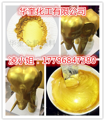 华奎999黄金粉无毒、无味、环保、耐光照、耐酸碱、不变色、不迁移、不导电等特性,可使成品颜色金黄、鲜艳、光泽明亮,稳定性好,呈现闪烁的黄金效果。能耐极高温度。广泛适用于各类工艺品、装饰品、佛像、寺庙、雕刻、铁艺、陶瓷、印刷、涂料、塑料、油墨、皮革等行业,对佛像、寺庙用金粉效果赋予优雅高贵的黄金色泽,可提高其产品附加值及竞争力。