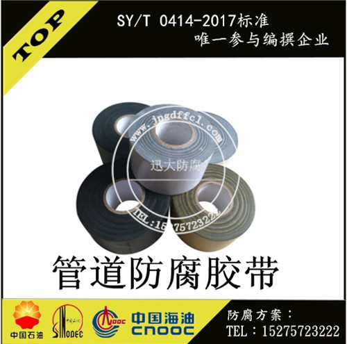 胶带由基膜和胶层两部分组成,基膜为聚乙烯膜片,胶层为丁基橡胶,有很好的机械强度和粘接密封性能。按其作用可分为防腐带(内带)、保护带(外带)、补口带。根据防腐层等级要求分为普通级、加强级和特加强级。
