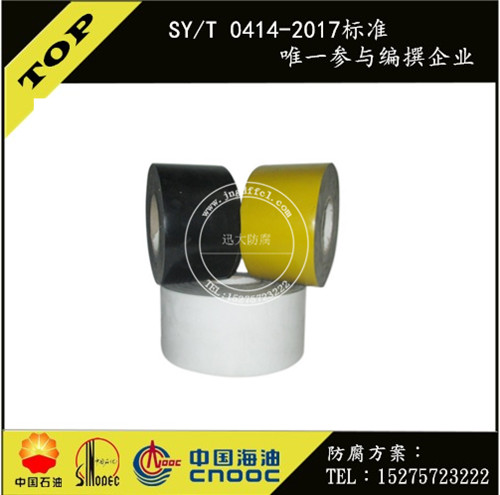 新的标准为代号为:SY/T0414-2007(钢质管道聚乙烯胶粘带防腐层技术标准),其中最主要的重新规定了防腐胶带的防腐等级为:防腐层厚度,加强级≥1.0mm 特加强级≥1.4mm 胶带对底漆钢剥离强度增加和增加带隔离膜胶带(聚乙烯600型防腐胶带、聚乙烯双面胶型防腐胶带)。