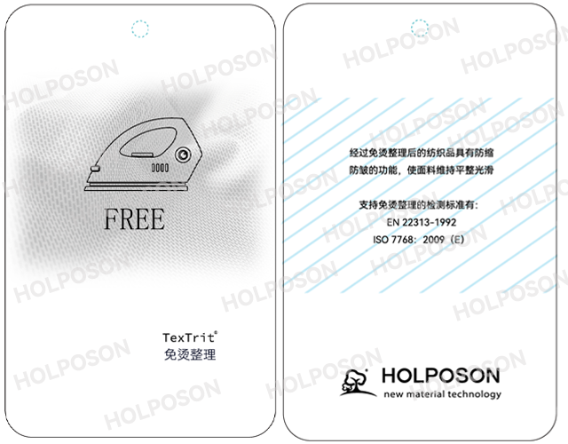 防皱整理剂HOLPOSON®Crisp Man 适用于棉,黏胶,涤纶等面料,经整理后的面料有防皱、免烫功能,不会产生黄变等问题。