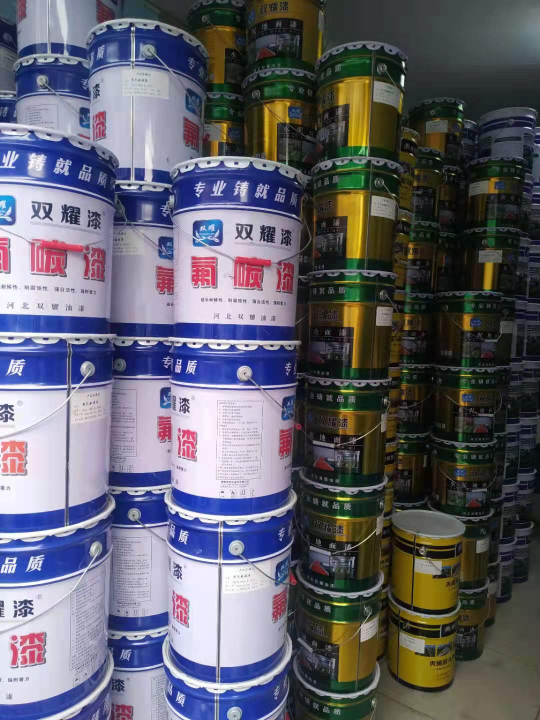 西安双耀建材装饰有限公司 经营的环氧富锌底漆、环氧煤沥青防腐漆、反光漆荧光漆、马路划线漆、环氧饮用水涂料、氟碳金属漆、丙烯酸聚胺酯面漆、脂肪族聚胺酯面漆、钢结构防火涂料、环氧云铁中间漆、氯磺化聚乙烯防腐漆、乙烯磷化底漆、有机硅耐高温漆、无机富锌底漆、无机硅酸锌底漆、高氯化聚乙烯防腐漆、氯化橡胶防腐漆、环氧玻璃磷片面漆、耐油抗静电防腐漆、环氧封闭底漆、环氧清漆、环氧地坪漆、环氧自流平地坪漆、水泥地板漆等产品畅销陕西省内及周边市场乃至全国,如甘肃、内蒙、湖北、四川、辽宁、北京等地。所销售的产品在消费者当中享有较高的地位,特别是环氧富锌底漆、环氧煤沥青防腐漆、反光漆、荧光漆、马路划线漆、环氧封闭底漆、环氧清漆、环氧地坪漆、环氧自流平地坪漆、水泥地板漆、无机富锌底漆、钢结构防火涂料、烟囱标志漆、等产品以独特的质量优势及价格优势,与多家零售商和代理商建立了长期稳定的合作关系。产品品种齐全,价格优惠,现货供应,欢迎订购!