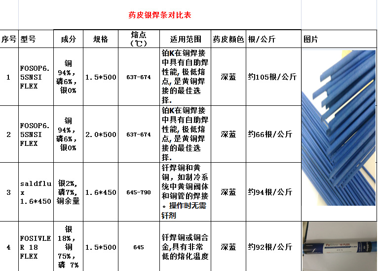 | 该产品是包有蓝色药皮的银钎焊条 | ||||||