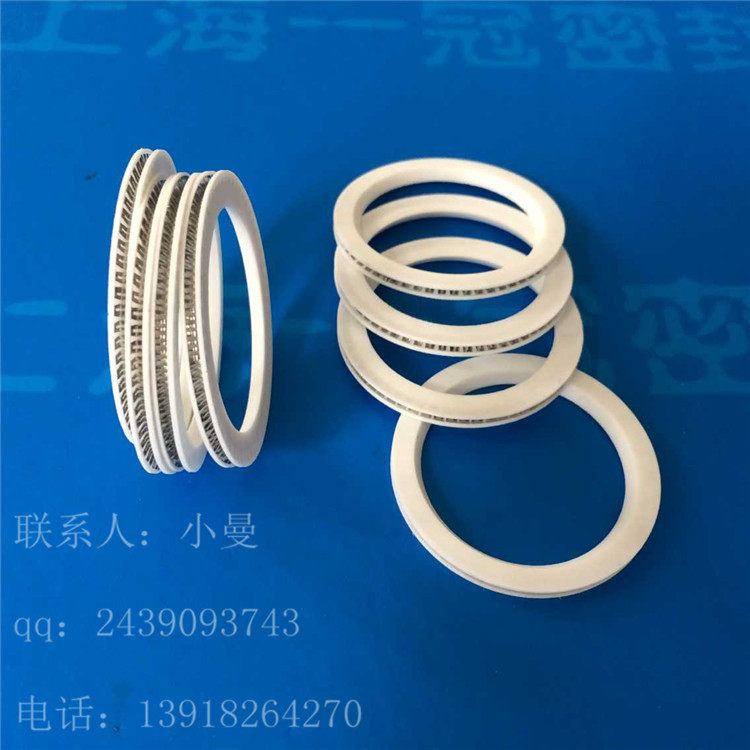 由一个U型的PTFE密封圈内装特殊的V型不锈钢弹簧的轴用单向往复密封。