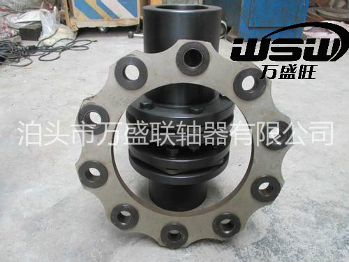 由几组膜片(不锈钢薄板)用螺栓交错地与两半联轴器联接,每组膜片由数片叠集而成,膜片分为连杆式和不同形状的整片式。膜片联轴器靠膜片的弹性变形来补偿所联两轴的相对位移,是一种高性能的金属强元件挠性联轴器,不用润油,结构较紧凑,强度高,使用寿命长,无旋转间隙,不受温度和油污影响,具有耐酸、耐碱防腐蚀的特点,适用于高温、高速、有腐蚀介质工况环境的轴系传动。