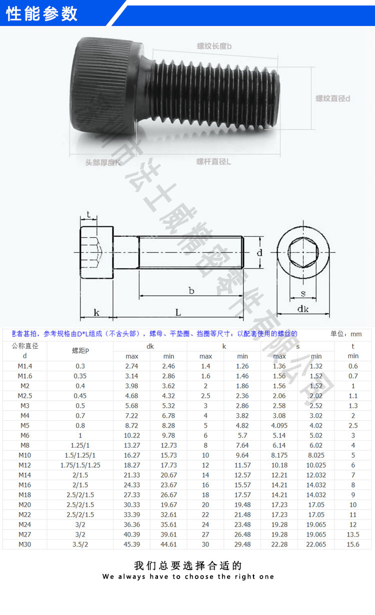 12.9级合金钢发黑全牙圆柱头内六角螺丝M6