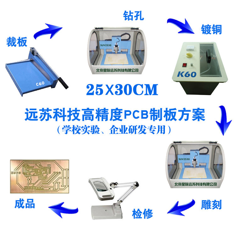 1.远苏科技是国内顶尖PCB雕刻机生产制造商,专注于国内外高端企业及学校客户的精密研发制板需求,提供用于对覆铜板进行钻孔、雕刻、外形铣割的线路板雕刻机,只需很短的时间即可完美制作出所需的精密线路板,是广大大中小型企业及科研部门不可或缺的必备产品,本产品主要用于企业研发部门、大中专院校实训实验室及研究所;