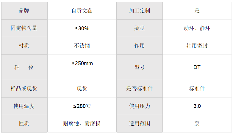 机械密封结构特点: 单端面、 平衡型、任意旋转。