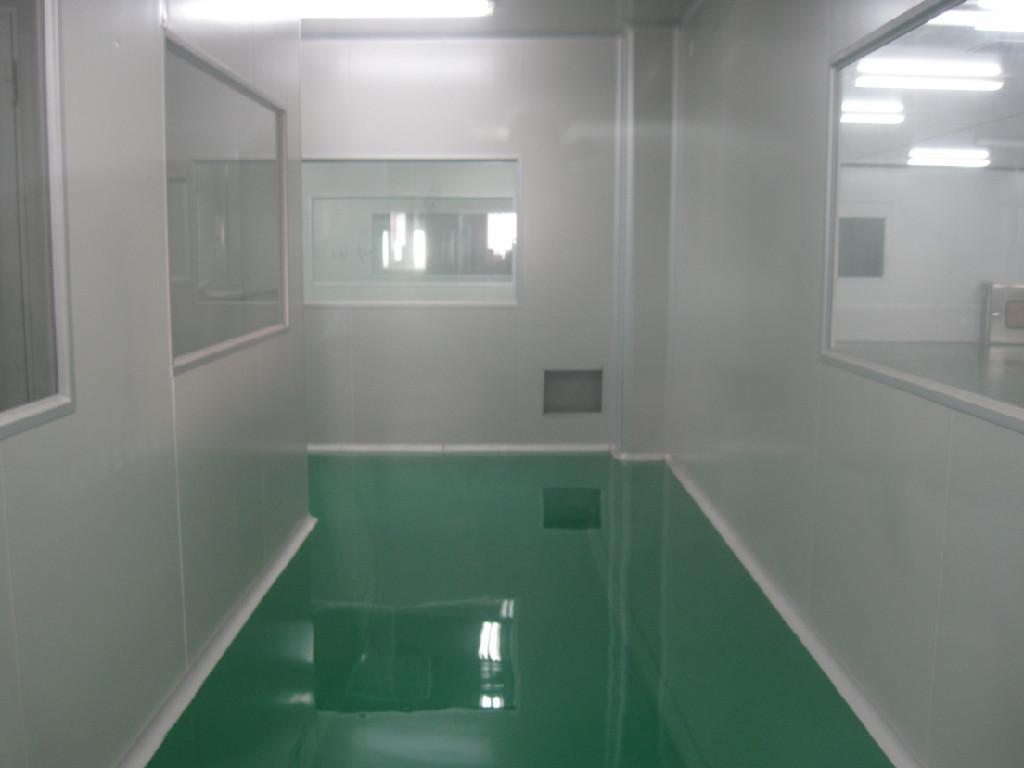 本漆分为A、B两组份,其中A组为环氧胺类固化剂,B组为无溶剂环氧色漆。该漆耐药品性优良、无接缝、环保不含溶剂、无毒、附着力强、耐磨、耐冲击、耐强酸碱、防尘等。可长期经受汽车、叉车碾压。主要适用于各类电子厂、医药厂、食品厂等地面的涂装。