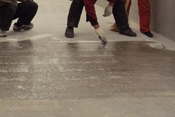 3.4.1、改造基面,基层应坚固、平整、无明水渗出。铲除疏松找平层、装饰层,清除油脂和其它妨碍基层与防水层粘结的物质。