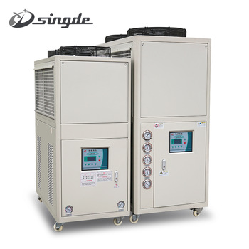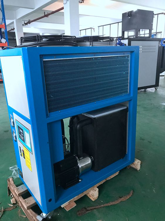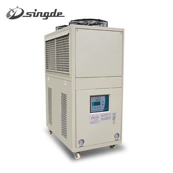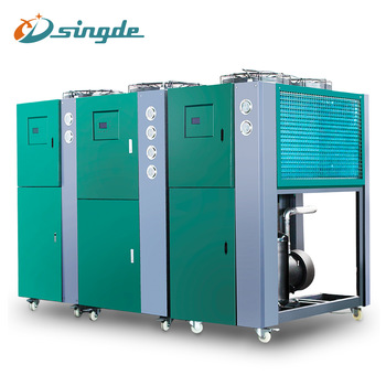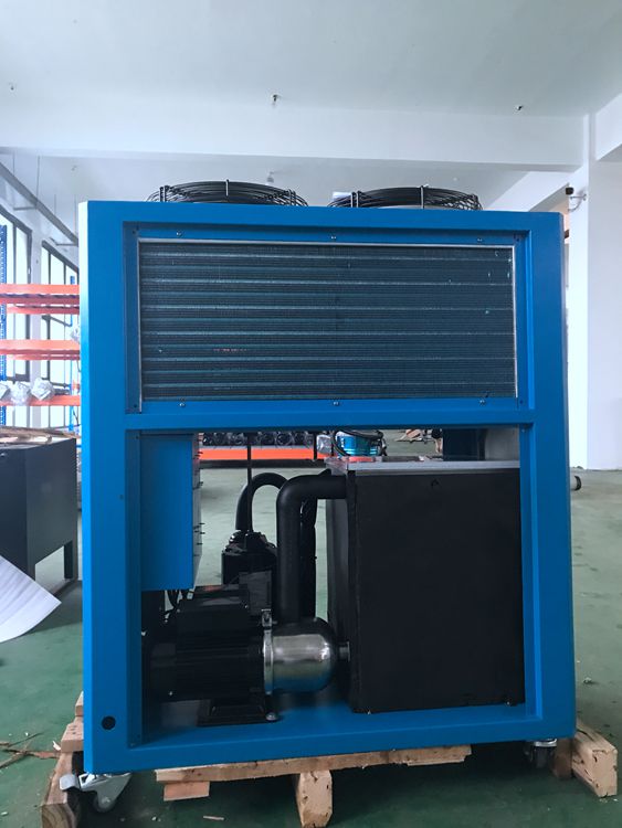风冷式冷水机是冷水机型号之一,将常温的水通过冷水机的压缩机制冷到一定的温度以强化冷却模具或机器,作为单机使用,散热装置为内置之风扇,主要有三个相互联系的系统:制冷剂循环系统、水循环系统、电器自控系统。
