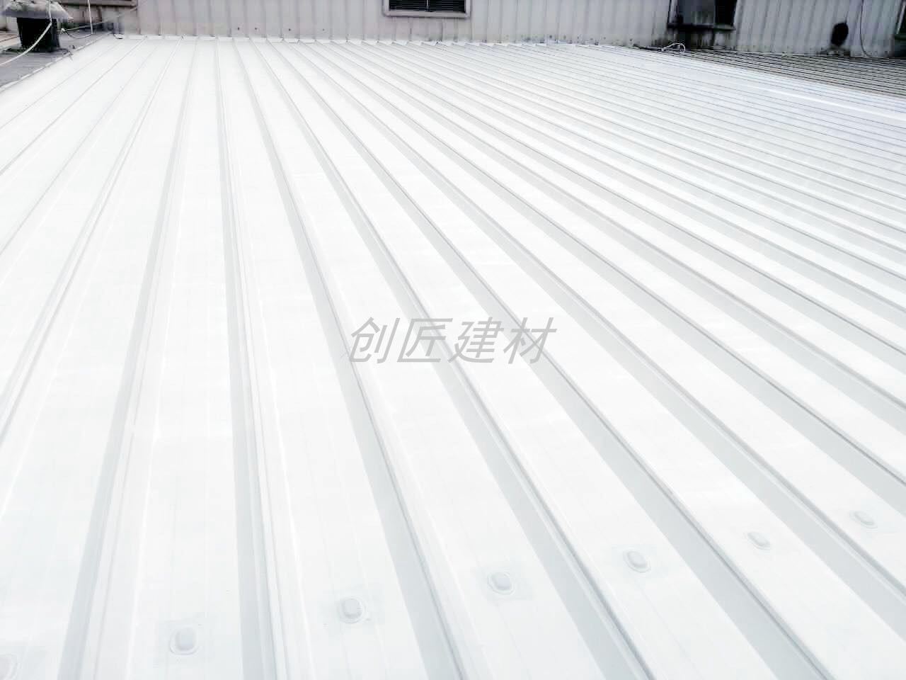创匠建材金属屋面专用防腐防水涂料是由自交联丙烯酸防水乳液为基料,经过添加多种特殊优质辅料精加工而成,是一种高性能高交联的水性单组份高弹耐候性防腐防水涂料;辅之以缝织聚酯布而形成的无缝防水系统,此系统具有优良的耐化学腐蚀性和卓越的耐候性对底材有高强的保护性,本产品绿色环保,施工便捷、无明火作业,无污染,对人体无伤害。