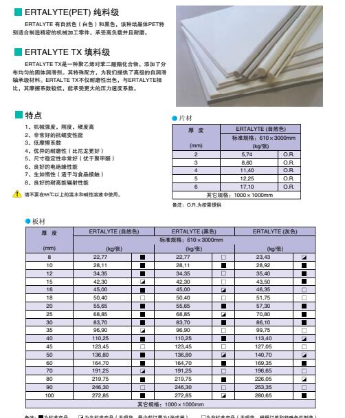 ERTALYTE 有自然色(白色)和黑色,该种结晶体PET特别适合制造精密的机械加工零件,承受高负载并且耐磨。