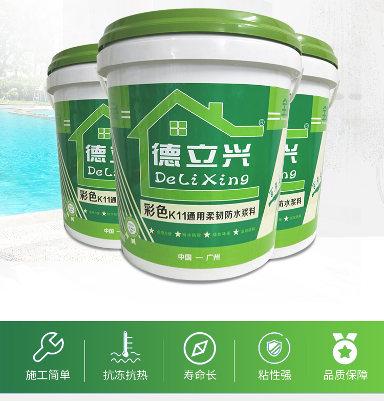 “德立兴”系列防水产品系列齐全,涵盖了屋面防水系列、厨卫防水系列、水池地下室防水系列、外墙透明防水系列、堵漏密封系列、瓷砖胶系列、填缝剂系列,适用各类建筑大楼、宾馆酒店、花园小区、桥梁隧道、公路铁路、人防工程、饮用水池、污水处理池、军事基地等工程案例。产品具有质量稳定可靠、绿色环保、耐久性好、健康无毒、施工安全、简便、无污染、粘结力强、耐候性好、耐老化性能优良,而且还能起到隔热、保温和装饰美化作用,深得新老客户的信任和好评。