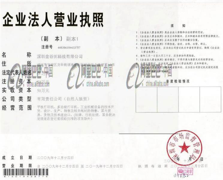 深圳金谷田科技有限公司是一家集设计、研发、生产和销售为一体的印刷设备型企业,专营万能彩印机,万能平板彩印机,A3万能彩印机,A2万能彩印机,A2循环滚筒式万能彩印机等。