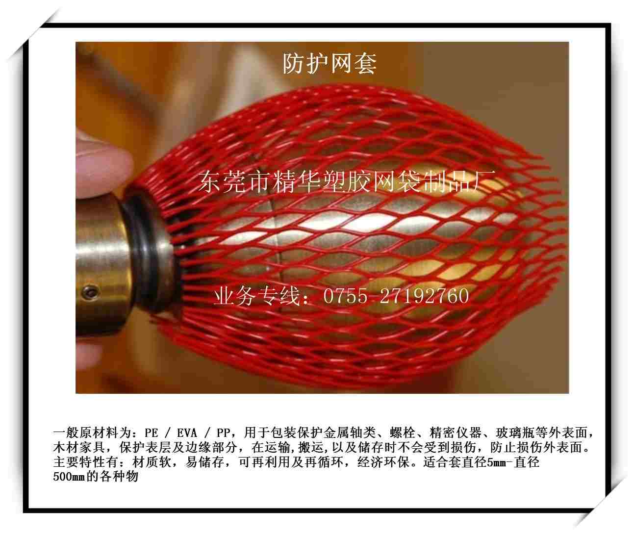 公司产品有:PP,PE包装网袋(20-400目)玩具网袋,工艺品网袋,化妆品网袋,水果网袋,环保网袋,蔬菜网袋,包装网袋,洗脸发泡网袋,购物网袋,尼龙六角网袋,四角网袋,涤纶网袋,车缝网袋,缩口网袋,穿绳网袋,蒜子包装网袋,干果网袋,农产品网袋,网套,防护网套,五金网套,洋酒网套,管件网套,钢瓶网套,日用品网套,香皂网袋,双层网袋,礼品网袋,水果包装网袋,环保包装网袋,购物网兜,蔬菜包装网袋,尼龙六角网袋,四角网袋,菱形网袋,出口网袋,香皂网袋,过滤网袋,樟脑球网袋,网扣(大,中,小号)菱形网袋及各种加粗加宽特制降解网袋,降解网套等工业产品网、农贸产品包装网等一系列网袋。种类超多,规格齐全。颜色精美