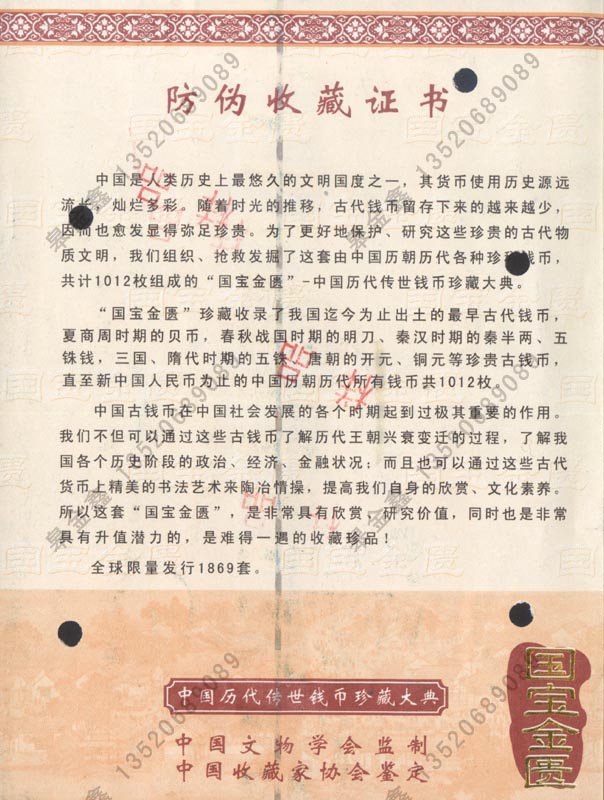 黄金收藏证书协会证书防伪纸防伪证书