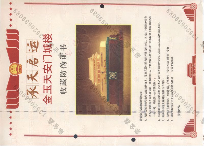 2、防伪合格证运用特种防伪纸张(水印纸、安全线纸、证券纸、水印+安全线+微胶囊纸等)。