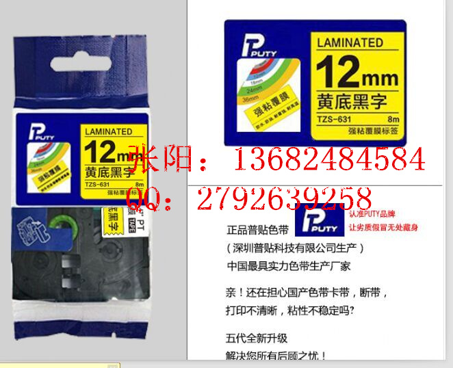 兄弟HG高速国产普贴色带TZ-231,张阳 13682484584 0755-83220551 QQ:2792639258兄弟标签机的替代兼容色带都很好的规避了版权侵权问题,或许和中国打印机市场兼容色带发展成熟有关系,几乎所有标签机替代兼容色带一开始就规避了对原装正品色带的侵权问题,多数兼容替代色带在外包装盒上清楚的标明了自己的品牌,也就表明了自己的身份,只是适用于兄弟标签机的系列机型的兼容色带,和原装正品色带完全是两回事。这样的就让客户在购买色带的时候就有了选择,价格较高质量最优的原装正品色带,或者是质量略有差别但价格极为低廉的兼容替代色带。兄弟标签机国产兼容色带的包装盒是五花八门,早先的国产兼容色带都是纸盒包装,(因为兄弟正品色带原来也是纸盒包装的,只是后来改成了塑料包装),纸盒包装的颜色有黑色的、有蓝色的,还有和兄弟正品色带包装改成塑料包装之前的蓝白相间纸盒的,后期的国产兼容色带都改成了塑料包装的,有蓝白相间完全不透明的,也有和兄弟正品色带包装类似的部分透明的塑料包装的,从这些国产兼容色带五花八门的包装盒上,也能看出兄弟正品色带包装盒的演变轨迹。