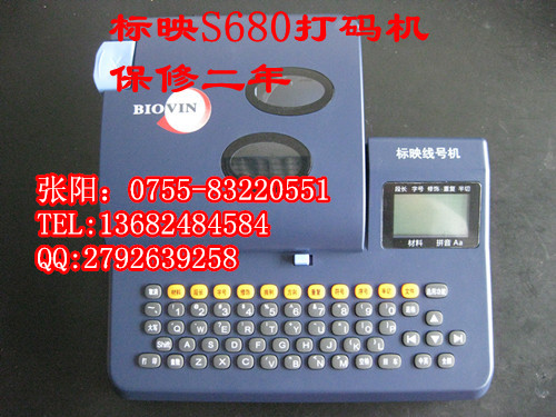 深圳标映S680中英文号码管打字机,张阳 13682484584 0755-83220551 QQ:2792639258标映线缆标志打印机S650,标映套管印字机S680,标映电脑线号机S900是国内销售的3款超性价比的线号机,受到行业人士的喜爱,先天打印大号套管的优势,操作简单可以打印中文英文和电力符号。标映线号机S650使用的耗材,色带型号为RS-80B黑色一卷长度为85米一盒10卷,色带没有芯片价格优惠,可以打印0.52~10.2的号码管和热缩管和标映S680、S900使用的色带不一样,但是贴纸是通用的,标映S680/S900使用的色带是一样的型号是RS-100B黑色还有一款RS-100W白色色带,长85米色带有芯片价格比RS-80B贵点因为有芯片加密这样市面上是不会有仿制的伪劣产品,一些不是官方的色带买回去使用压根儿就不能用,提示芯片错误等,所以不要看到一些廉价的标映RS-100B色带就盲目的去购买,需要提前了解清楚,尽量选择我们这样的代理商,保证是标映原厂色带即使出现质量问题也不用担心,可以免费更换维修!标映线号机贴纸LS-06/09/12W/y/s白黄银6 9 12三种规格颜色,一个包装有10卷。标映线号机S650操作过程,连接上电源适配器打开电源进入主界面,选择打印的材料(套管,贴纸,热缩管)再选择材料的规格,最后输入文字内容可以根据需要来设置打印的份数,打印热缩管需要注意的,热缩管这种材料是比较特殊的,有时候会出现打印不清晰等,这种情况属于正常现象,因为热缩管这种材质表面比较光滑附着力太差,导致打印不清晰,很多客户会认为是机器的故障,其实和机器没关系,主要是这种材质太特殊了,现在也没有很好的解决方法,有一些小技巧可以分享一下,我们可以把打印浓度调高一点,也可以选择打印贴纸的材料来打印热缩管,出现打印不清晰的时候可以尝试一下这些小窍门。