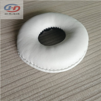 订制50-65mm圆形小耳机套 车缝白色PU皮耳套 柔软带定位孔