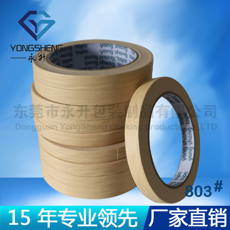 永升包装生产的高温美纹胶带可耐温120℃-280℃,厚度:150-190±5um,拉伸强度:≥28-30,耐温半个小时不残胶。