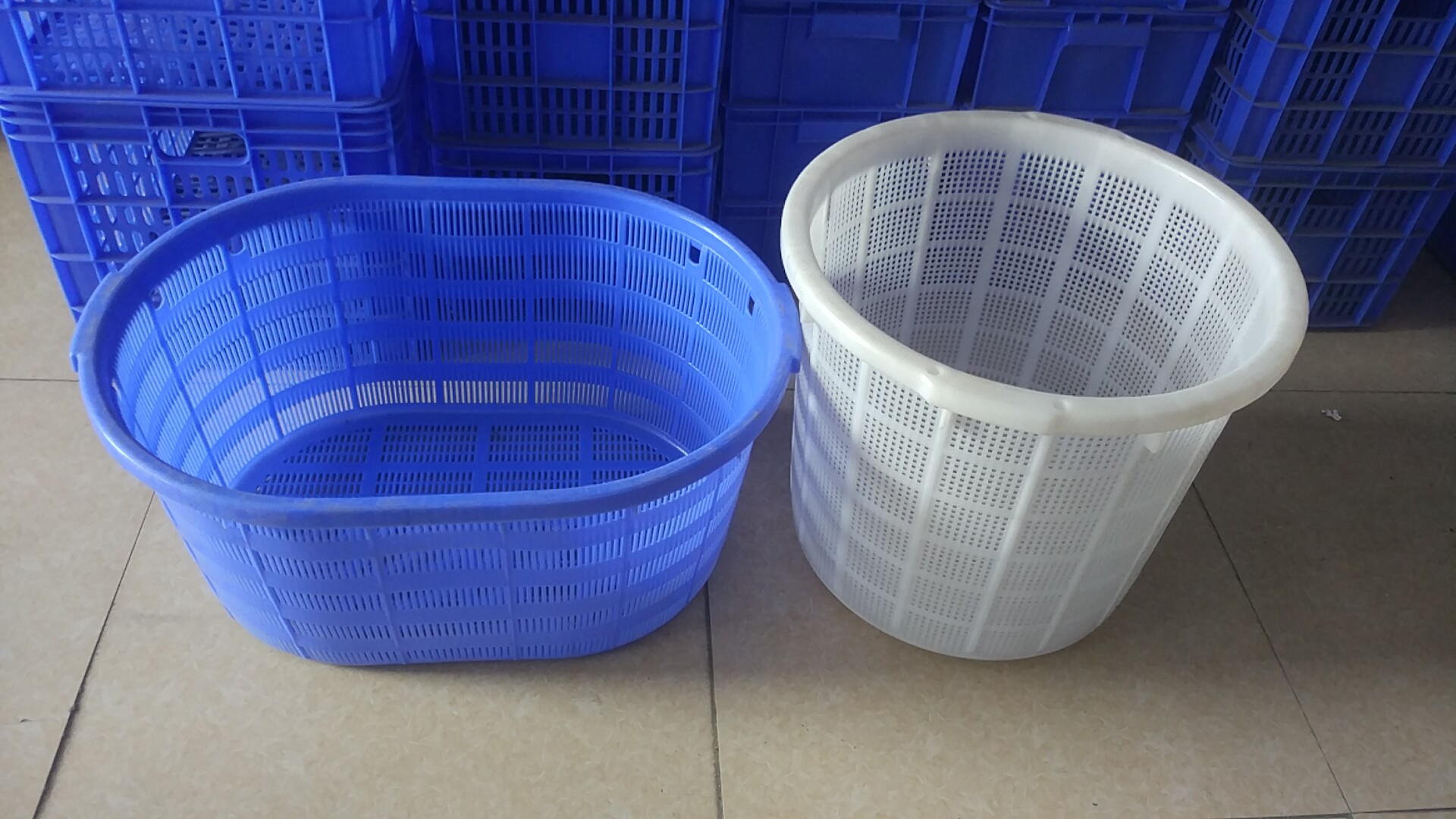 塑料周转箩主要由HDPE注塑生产。为了提高箱体的强度,节省原料,通常在箱体的内、外壁和底板处设计加强筋,设置在底板和内壁的加强筋还起到隔离瓶体的作用,避免互相碰擦,减少破损。周转箩长期使用,经常遭日晒、雨淋,容易老化,为了避免这种现象,延长使用寿命,应采用相对分子质量分布较宽的树脂,或以高、低压PE混用,以增加防应力开裂能力。为了防止日光中紫外线的影响,可以在加工中加入蓝色颜料和掺入适量的防氧剂和抗紫外线剂,防止紫外光辐射和氧化。