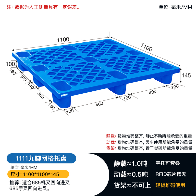 四川塑料托盘生产厂批发1111九脚网格托盘 叉车仓储托盘